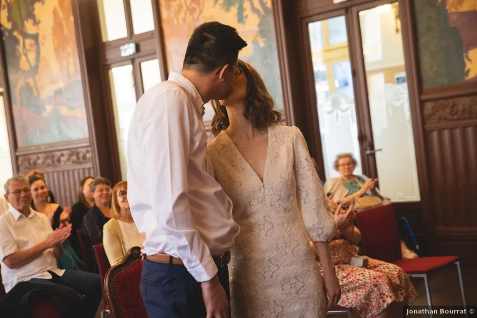 Joli mariage bien sympathique réalisé par une journée ensoleillée à la mairie du 3e arrondissement de Lyon pour la cérémonie civile.