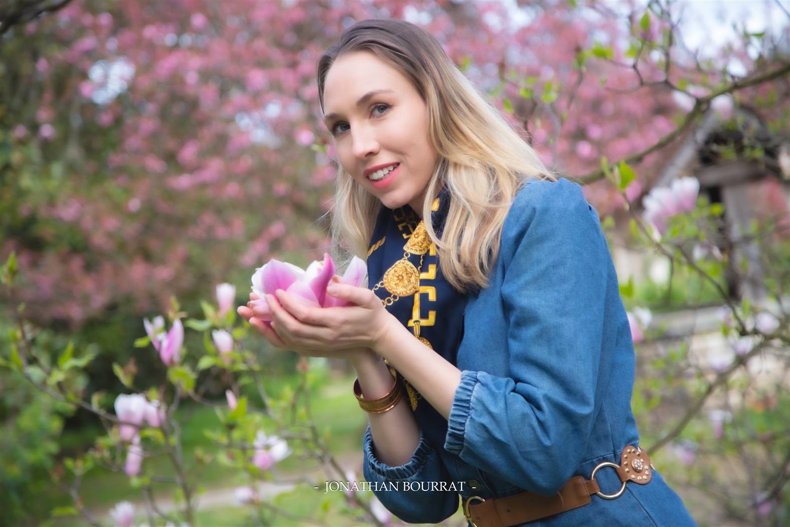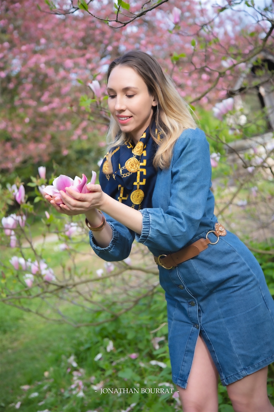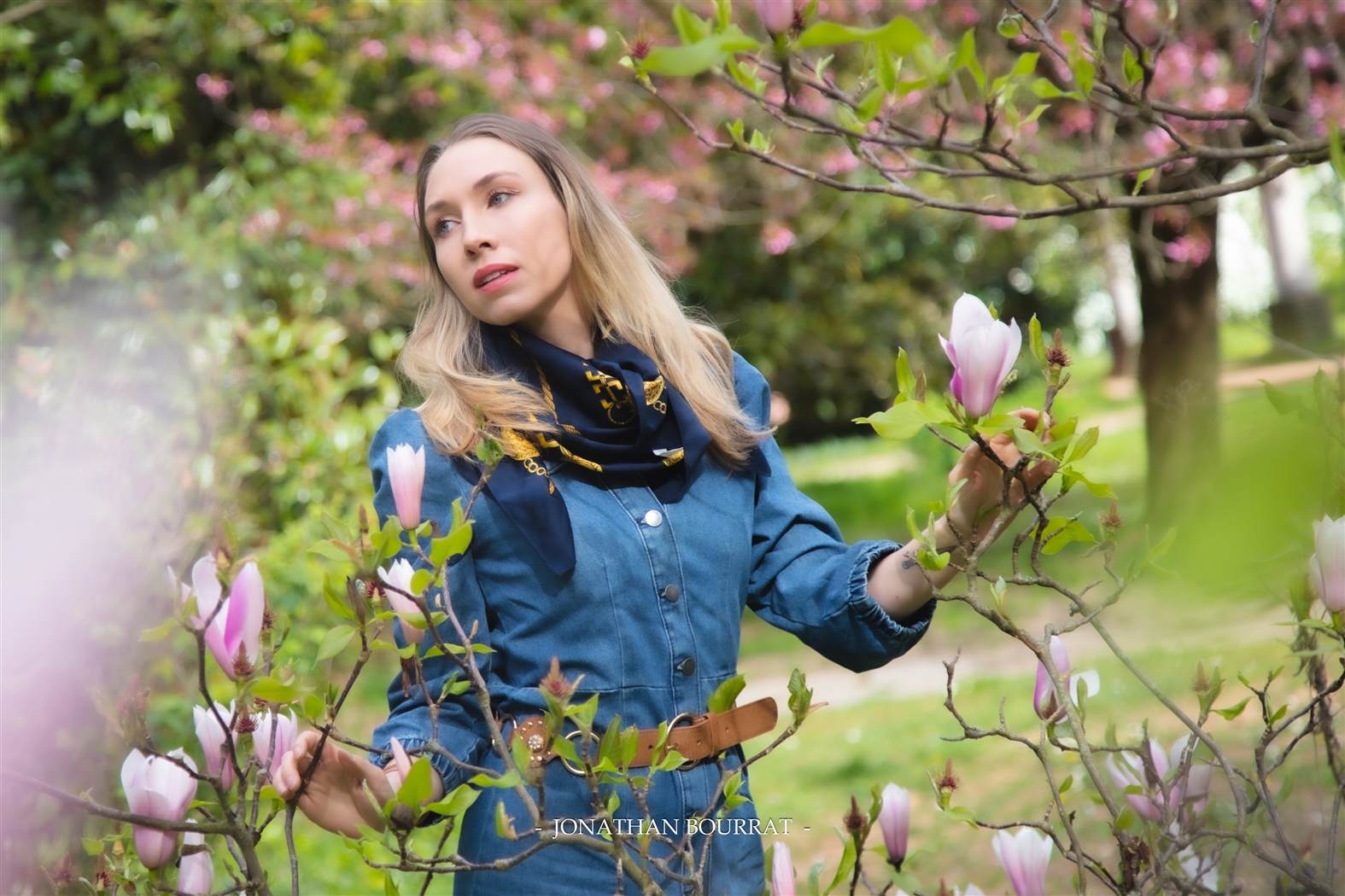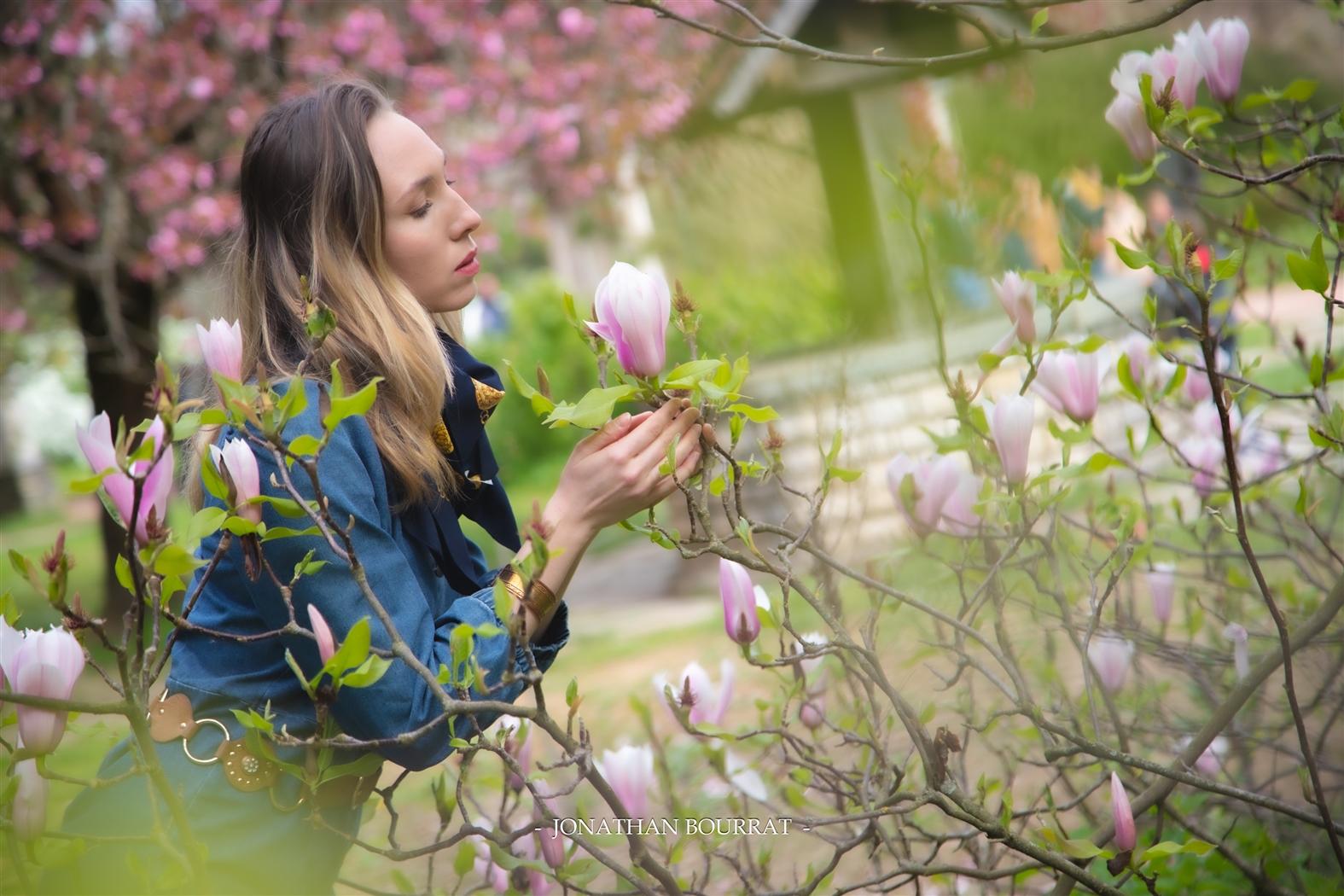 Petite sortie photos du côté de la grande roseraie du parc de la tête d’or. Au printemps, avec la floraison des arbres le site offre un joli décors pour y faire des portraits. Le bleu de la robe contraste bien avec le rose ou blanc de l’arrière plan.